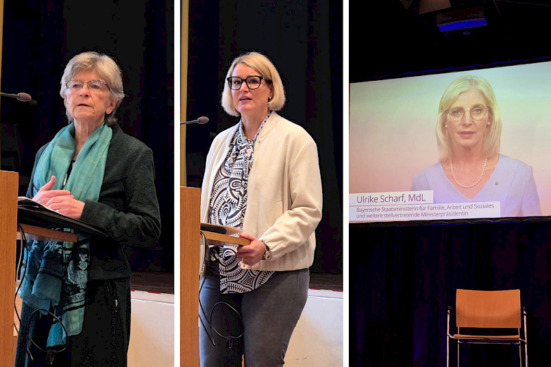 Ulrike Scharf, Bayerische Staatsministerin für Familie, Arbeit und Soziales, charakterisierte das Geschehen als "eiskalten Sklavenhandel mitten in Bayern, mitten in Europa". Sie verwies auf die wichtige Arbeit des Aktionsbündnisses, das Brücken zurück ins Leben schlage, und informierte über Unterstützungsmaßnahmen der Bayerischen Staatsregierung wie Aufklärungskampagnen an Schulen zur Warnung vor Loverboys.
